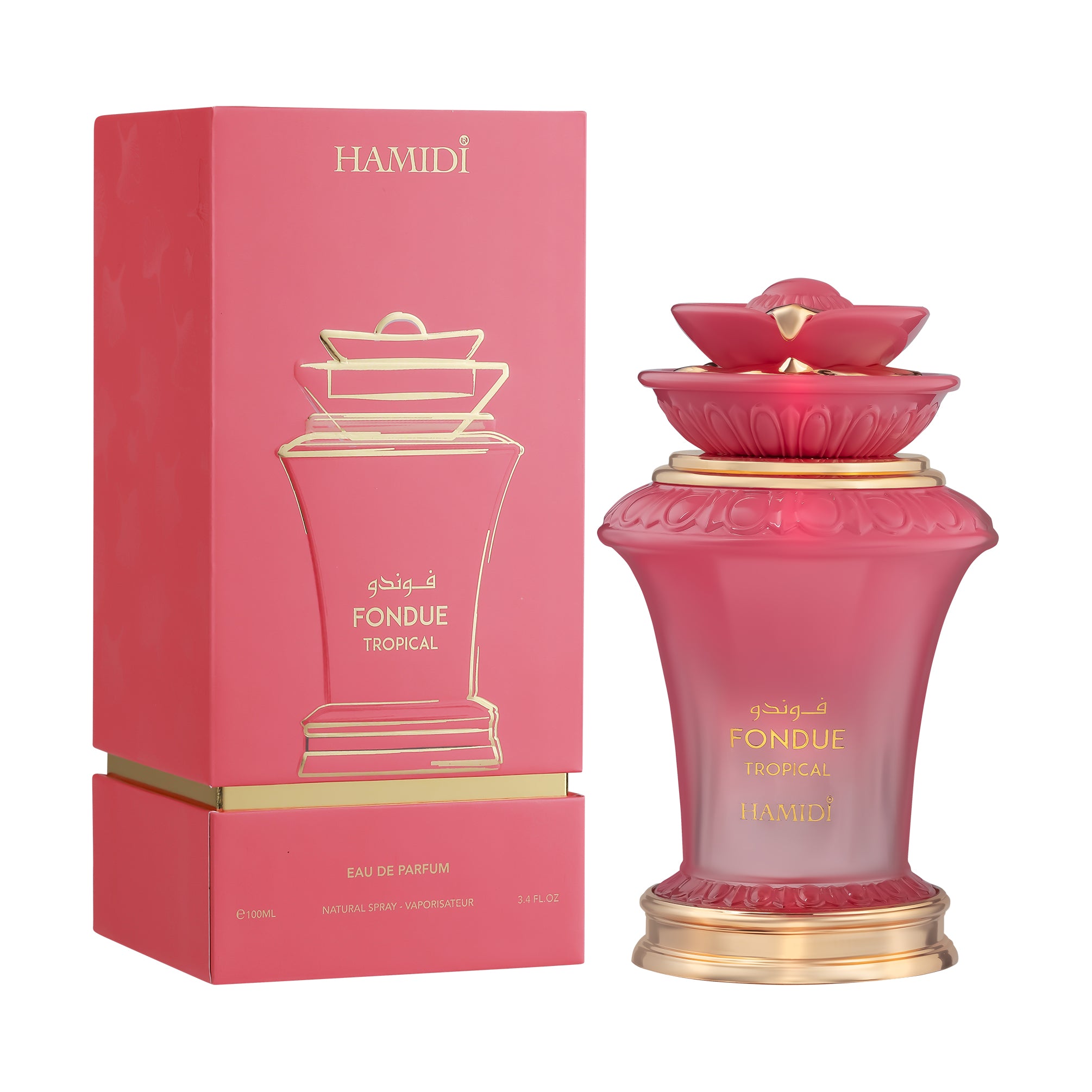 Fondue Tropical de la Hamidi este un parfum fructat si seducator, ce emana bucurie si pofta de viata. Se deschide cu un val proaspat si delicios de grapefruit, fructe de padure si cirese dulci, oferind un start vibrant si jucaus.